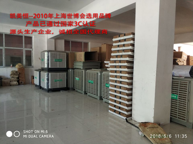 冷風機是當風機運行時進入腔內產(chǎn)生負壓,使機外空氣流過多孔濕潤的濕簾表面迫使過簾空氣的干球溫度降至接近于機外空氣的濕球溫度,即冷風機出口的干球溫度比室外干球溫度低3-12℃,空氣愈干熱,其溫差愈大,降溫效果越好。由于空氣始終是從室外引進室內,(這時候叫正壓系統(tǒng))所以能保持室內空氣的新鮮;同時由于該機利用蒸發(fā)降溫原理,因此具有降溫和增濕的雙重功能(相對濕度可達75%左右),在紡織、針織等車間使用,不但能改善降溫增濕條件,而且還能凈化空氣,減少針紡過程中的針斷絲率,提高針紡織產(chǎn)品的質量。 冷風機(蒸發(fā)式冷氣機)的四周裝有使用特種材料的蜂窩狀濕簾,具有很大的表面積,通過水循環(huán)系統(tǒng)對濕簾不斷增濕;在濕簾冷風機內裝有高效低噪節(jié)能風機,當風機運行時,濕簾冷風機的產(chǎn)生負壓,使機外空氣流經(jīng)多孔濕潤的濕簾進入機內,由于濕簾上水的蒸發(fā)吸收熱量,迫使統(tǒng)經(jīng)濕簾的空氣降溫。同時由于濕簾上的水向流經(jīng)濕簾的空氣蒸發(fā),增大了空氣的濕度,因此濕簾冷風機具有降溫增濕的雙重功能。
