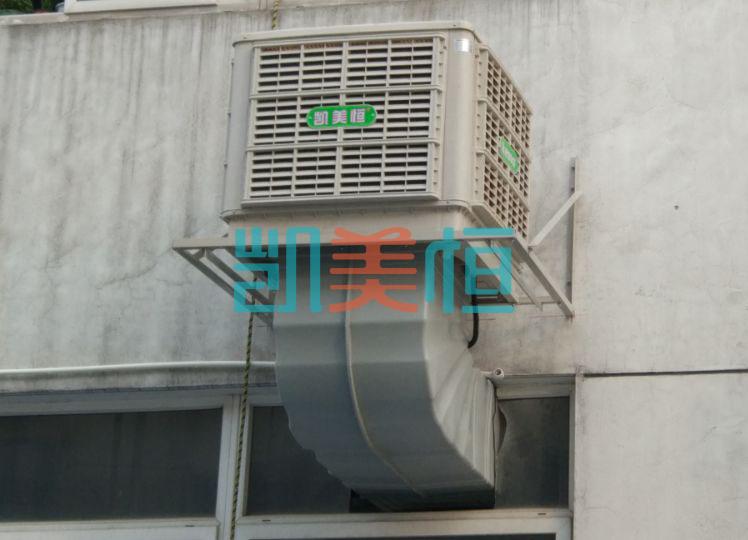 3.環保空調,對車間外空氣降溫后送入車間內降溫。車間外墻上安裝環保空調,它是通過風機往車間內送風,室外的新鮮空氣流經浸水的濕簾后空氣與水份充分接觸同時吸收空氣重點中的顯熱,從而達到降溫、換氣、除塵、增加車間內空氣含氧量的目的,這個方案特別適用于高溫及人群密集場所。